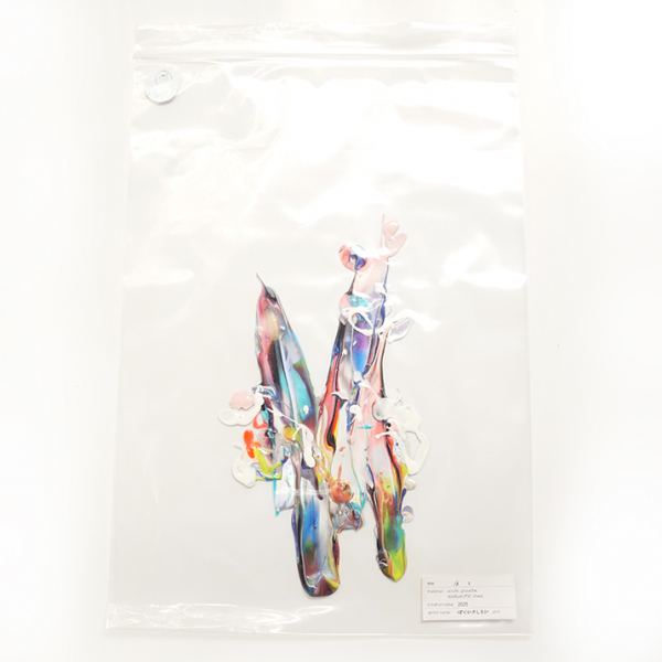 印刷ではないユニークな美術作品をステッカーに落とし込み、鑑賞者(購入者)が直接作品をカットして身近な物に貼るという行為により作家と鑑賞者間との双方向的な作品を制作しています